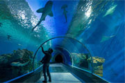 現(xiàn)代海洋館大量使用的透明材料是聚甲基丙烯酸甲酯,俗稱亞克力、有機玻璃。亞克力比硅酸鹽玻璃密度低[1]而柔韌,更容易成型、彎曲、適應水族館對形狀的特殊要求,在同樣強度的沖擊下破裂的概率遠比硅酸鹽玻璃低[2],即使破裂也不容易像玻璃那樣爆碎。